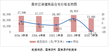 2025年三季度晋安区新建商品住宅成交均价23,680元/平方米,环比下降18.15%,同比下降15.42%。