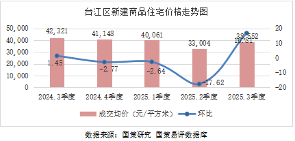 2025年三季度台江区新建商品住宅成交均价为38,552元/平方米,环比上涨16.81%,同比下降8.91%。