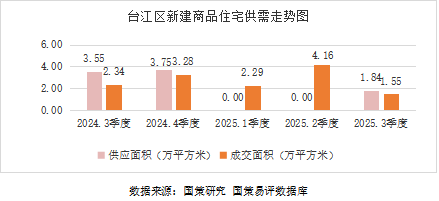 2025年三季度台江区供应面积为1.84万平方米,同比下降48.17%,成交面积为1.55万平方米,环比下降62.74%,同比下降33.76%。