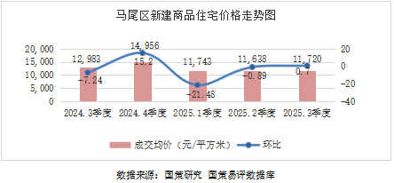 2025年三季度马尾区新建商品住宅成交均价为11,720元/平方米,环比上涨0.7%,同比下降9.72%。